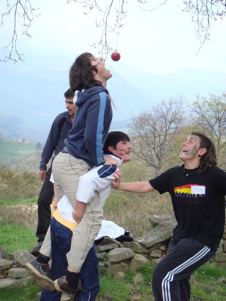 A partir de ahí se fue concretando la posibilidad de recrear, del modo más realista posible, las condiciones con que hubieron de vérselas nuestros antecesores, desde los tiempos de los cazadores-recolectores. En el bosque y luego en un albergue de montaña, alejados de toda civilización y tratando de alejarnos igualmente de las ideas previas o prejuicios acumulados en nuestro proceso de socialización, los alumnos y alumnas participantes, distribuidos en tribus, comenzarían una aventura en la que tendrían que buscar alimento y refugio al tiempo que se enfrentaban a diversos peligros y a la competencia entre tribus. En nuestra recreación algunos aspectos tenían que ser totalmente realistas, pues serían las necesidades básicas las que tendrían que dirigir la acción de los participantes, pero otros estarían expresados simbólicamente, como todo lo relacionado con la guerra y la violencia física, que habría de ser resuelto mediante juegos. Y desde un principio tuvimos claro que la actividad tendría que avanzar de forma totalmente autónoma, habiendo de ser los propios estudiantes quienes resuelvan sus conflictos, posicionándose ante la aparición de desigualdades o pobreza y creando instituciones que velen por el orden, la justicia y el bienestar social.